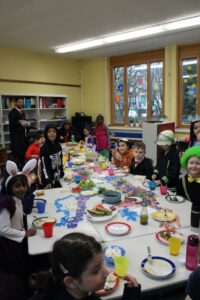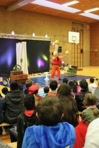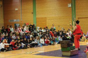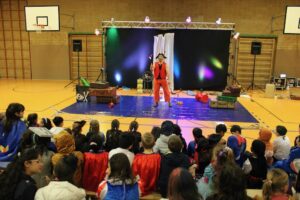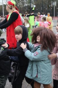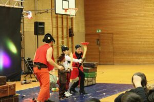 Karneval 2024 Heute haben wir Karneval gefeiert. Daniel vom Zirkus StandArt hat eine Show rund um Suche nach einem Piratenschatz gegeben und es gab wie immer eine große Polonaise über unseren Schulhof.