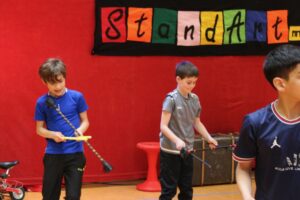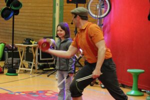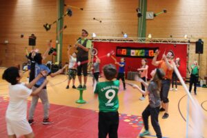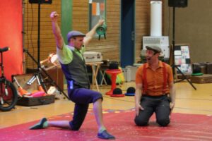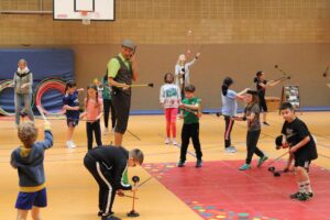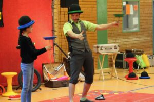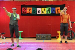 2.5. Tag 1: Tobi und Daniel stellen sich vor Das sind die ersten Bilder von unserer Woche mit dem Zirkusprojekt StandArt. Die Klassen 4 arbeiten mit den Künstlern die ganze Woche vom 2. bis zum 5. Mai.